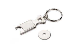 łączący funkcję otwieracza do butelek i żetonu do wózka sklepowego
