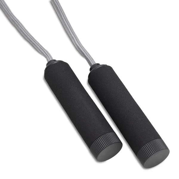 Zestaw do fitness składający się ze skakanki, taśmy oporowej (średni opór), etui oraz ulotki z zestawem ćwiczeń. Długość skakanki jest regulowana.